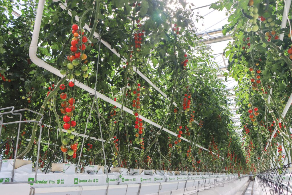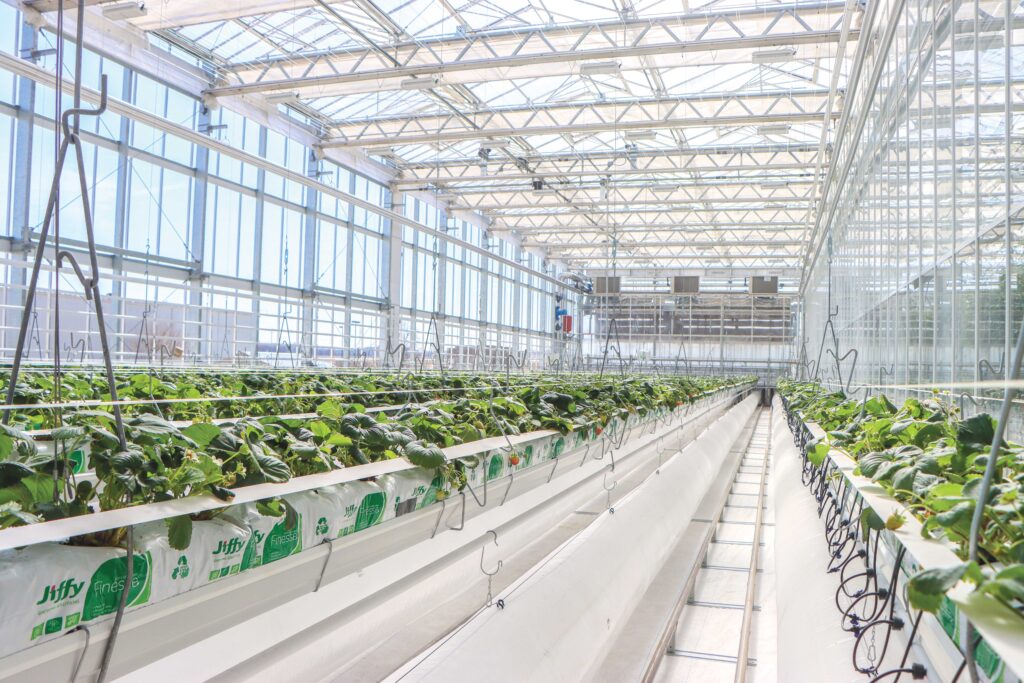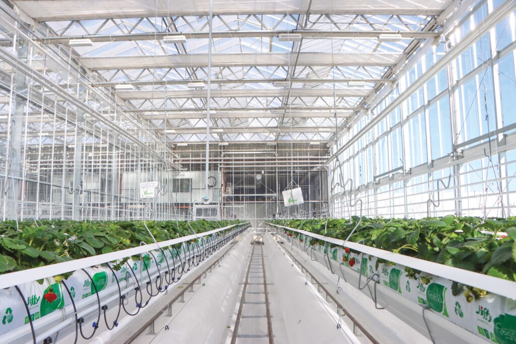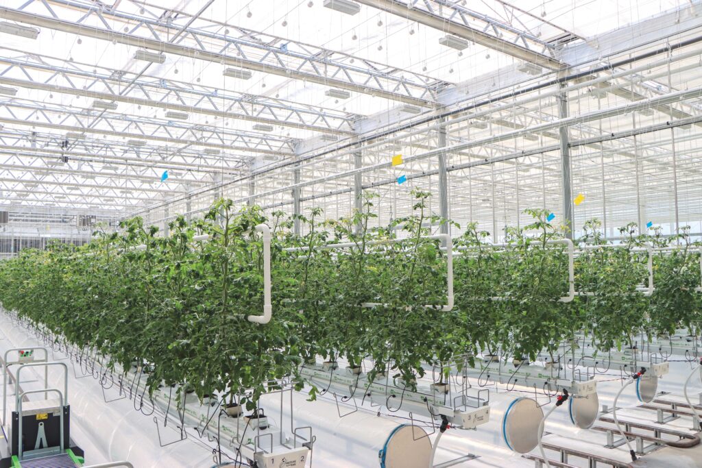 The greenhouse is equipped with advanced climate control technology to enable year-round, energy-efficient production. Systems include HAF and AHU fans, vertical sliding windows, hydronic heating, LED lighting, high-pressure fogging equipment and much more. These components allow GrowSpan to fine-tune temperature, humidity, airflow and light levels with precision, creating stable growing conditions throughout the year.