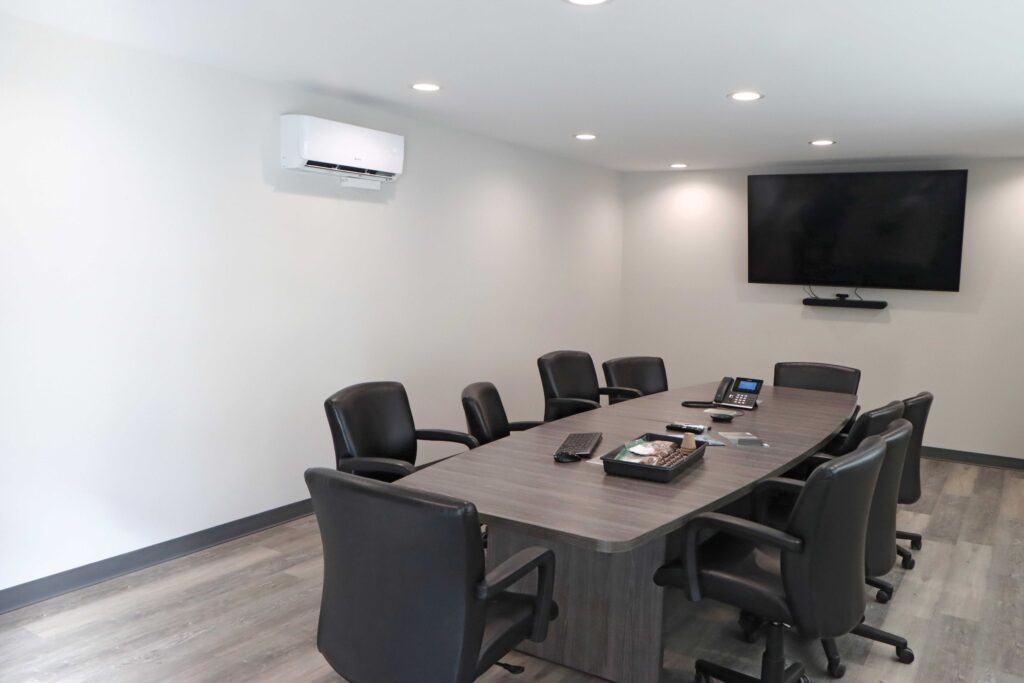 - Upper mezzanine with office and conference space facilitates daily operations and collaboration
